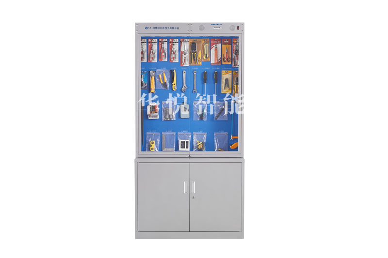 1、整体全钢柜体,上下两层结构,上层为展示区域,配置玻璃门,能开启,可更换展品;下层为储物柜,对开门,配置安全锁,内部设置隔板,可放置物品。